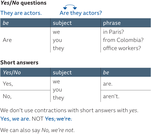 - Yes, we are meeting tomorrow. / No, we are not meeting tomorrow.