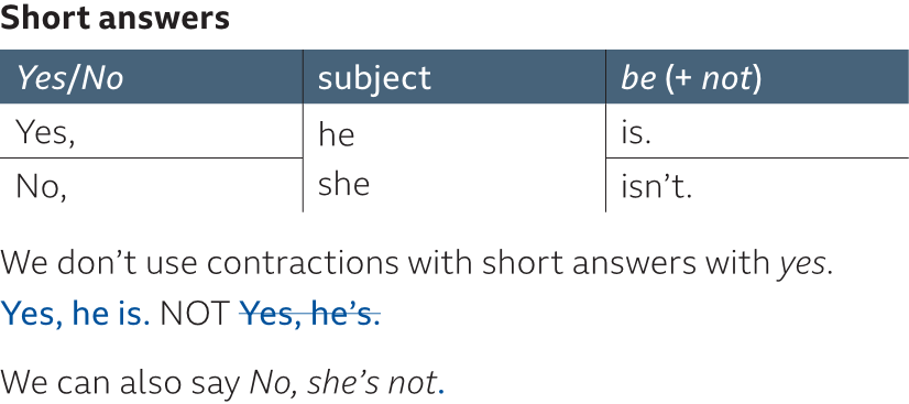 - Forma corta: «He isn’t here.» (Él no está aquí.)