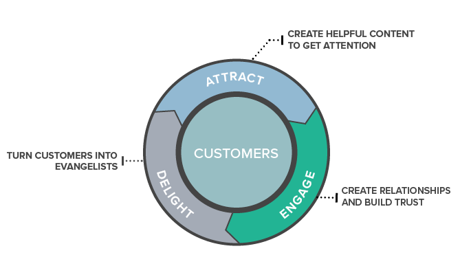 Es una estrategia de marketing entrante que pone al cliente en el centro. Tus clientes se convierten en la energía que impulsa tu negocio. El Marketing Flywheel organiza las 3 acciones que toda empresa debe realizar para lograr el crecimiento en ventas. La rueda tiene tres etapas:
